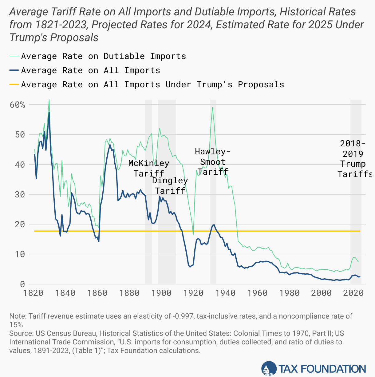 Trump often speaks fondly of this period, specifically singling out President William McKinley, who (as a member of Congress) crafted the “McKinley Tariff” of 1890, which raised the average U.S. tariffs to nearly 50%. “He was the most underrated president,” Trump told Bloomberg this year, adding: “He made this country so rich. All he did was tariffs, we didn’t have an income tax.” (At times, Trump has suggested we should return to that policy.) In addition to referring to the first R (revenue), Trump also frequently uses the language of restriction (he has called for the U.S. to have a “ring around the country”) and reciprocity (another word Trump has called his favorite, saying that other countries are treating the U.S. unfairly and that the U.S. must respond in kind).