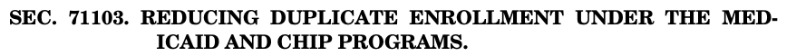 This section adds an 88th, requiring each state to participate in a system that will be set up by the HHS Secretary for states to share the addresses and Social Security numbers of their Medicaid recipients in a unified database, in order to ensure that no one on the list is double-dipping.