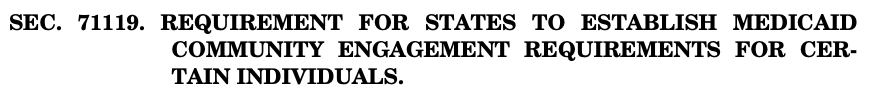 These “community engagement requirements” — generally referred to as “work requirements” — are the biggest change the OBBBA will make to Medicaid.
