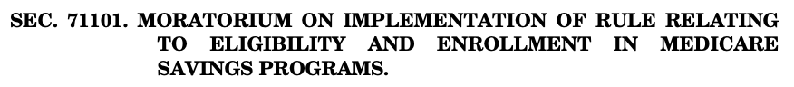 As you can see, the OBBBA places a moratorium on implementing the Biden-era rule on MSPs until September 2034.