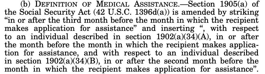 This change hasn’t gotten very much coverage, although it will impact the likelihood that low-income seniors will be able to pay for their health care costs. One of the few outlets that covered it, The Bulwark, did so with this headline: “Yes, They’re Going After Medicare Too.” I think that title is a bit simplistic (the article itself is more nuanced). Medicare Savings Programs aren’t Medicare benefits; they’re a separate program that helps people pay for the costs Medicare benefits don’t cover. This provision also doesn’t cut MSPs themselves, just a recent change that would have made it easier to sign up for one.