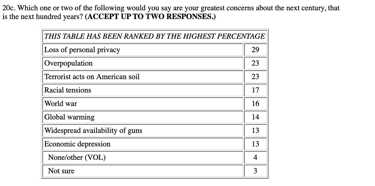 The Cantwell-Rodgers measure follows years of congressional fits and starts on the topic. At the very beginning of the Internet age, public pressure for privacy legislation was high. In September 1999, when Americans were asked in a Wall Street Journal poll to name their top concerns for the next century, “loss of personal privacy” sat atop the list. It beat out terrorist attacks, racial tensions, world war, and global warming.