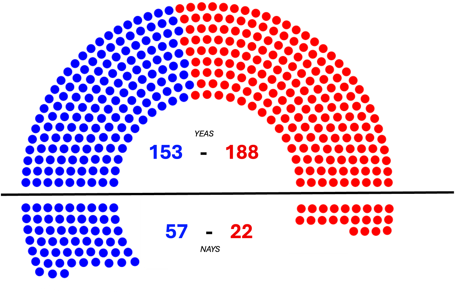 The State/National Security vote, which took place in the House yesterday, was what you might call a classic “horseshoe vote.” 188 Republicans and 153 Democrats supported the measure; 22 Republicans and 57 Democrats opposed it. The wings of both parties had their issues with the bill, but the members in the middle all supported it.