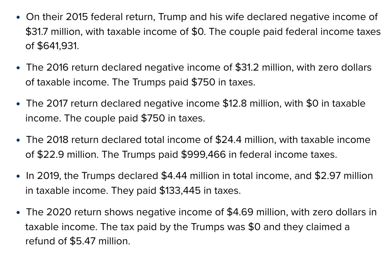 Here are the topline findings the committee already put it about Trump’s returns. The below is from CNBC: