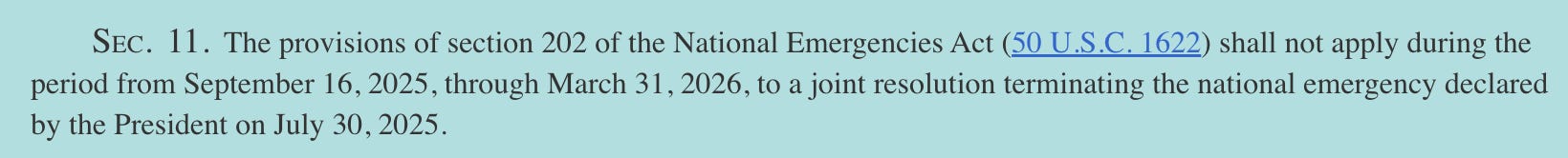 Similarly, one could imagine this vote on Trump’s tariffs being used as evidence that Congress is not on board with the president’s trade agenda, which he is claiming to have enacted with a (decades-old) legislative blessing. The Senate is also set to vote this week on a resolution overturning the national emergency that undergirds Trump’s worldwide “reciprocal” tariffs, which are also at issue in next week’s court case.