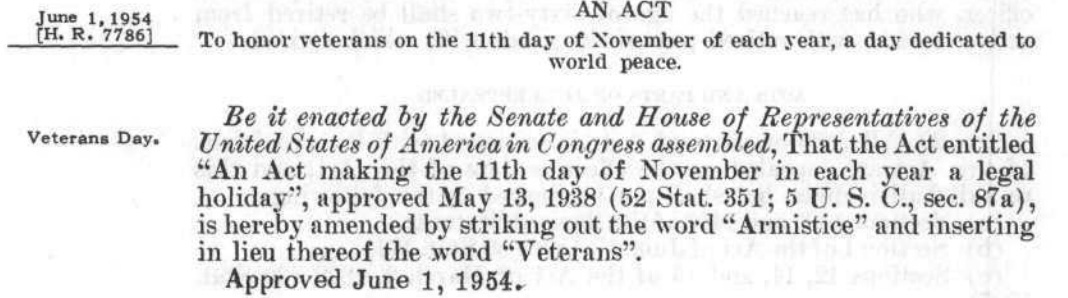 Before I go, since we spent some time delving into veterans issues in Congress today, I also thought we could take a look at the legislative history of Veterans Day.