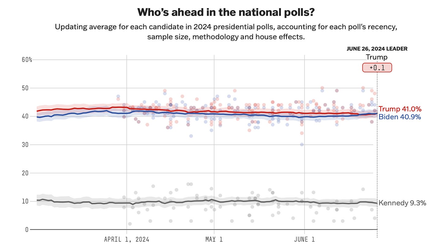 Supreme Court: The justices will release opinions — and maybe accidental opinions — at 10 a.m. ET. Will they rule on President Trump’s immunity from prosecution the day of the debate? We’ll see!e