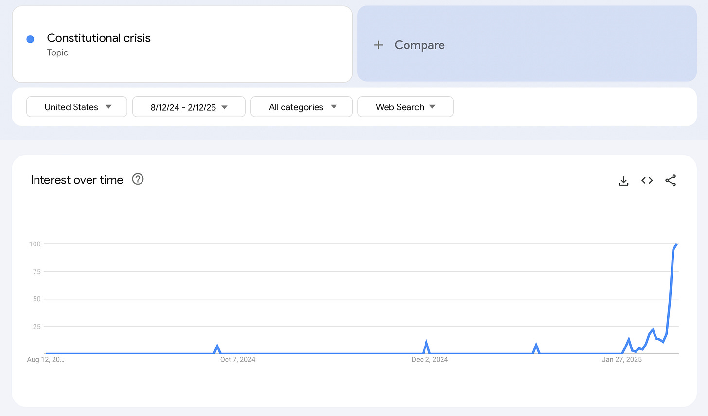 But didn’t the Trump administration already cross your threshold for such a declaration with its executive order that explicitly contravenes a Supreme Court ruling? I.e. the executive order granting Tik Tok a 75-day extension to comply with the law duly passed by congress, upheld through multiple legal challenges and affirmed by appellate courts and the Supreme Court. And on top of that, by ruling the way it did, the Supreme Court officially rejected then President-Elect Trump’s petition to the court to effect a delay on its ruling and thereby respect constitutional rights by preserving executive authority.