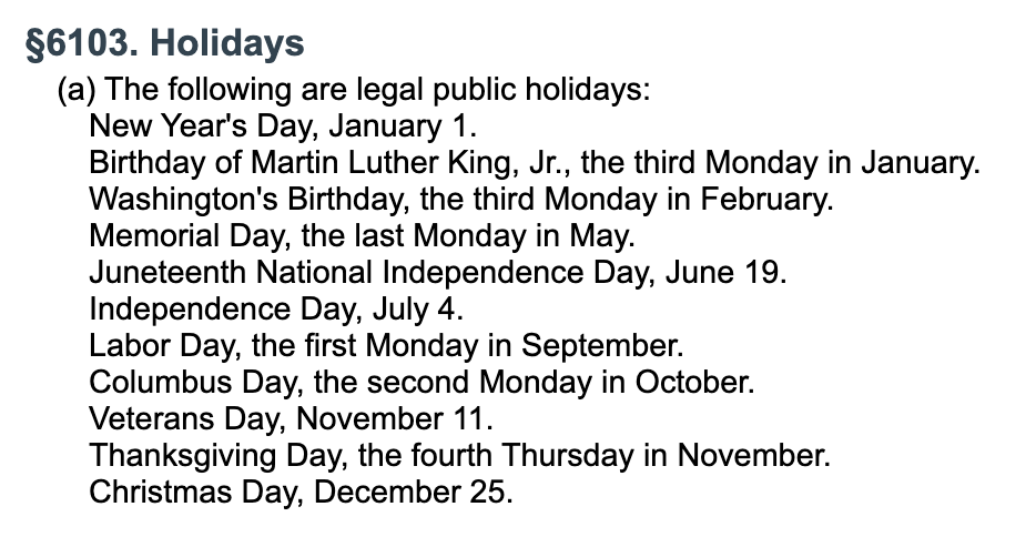 Good morning, and happy Presidents’ Day — or, as it’s formally called in 5 U.S. Code § 6103: “Washington’s Birthday.”