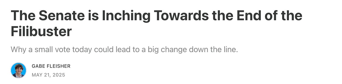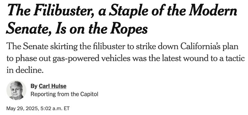 The prospect of a Senate without the filibuster, which was covered in the New York Times this morning (eight days after we covered it here 😉)