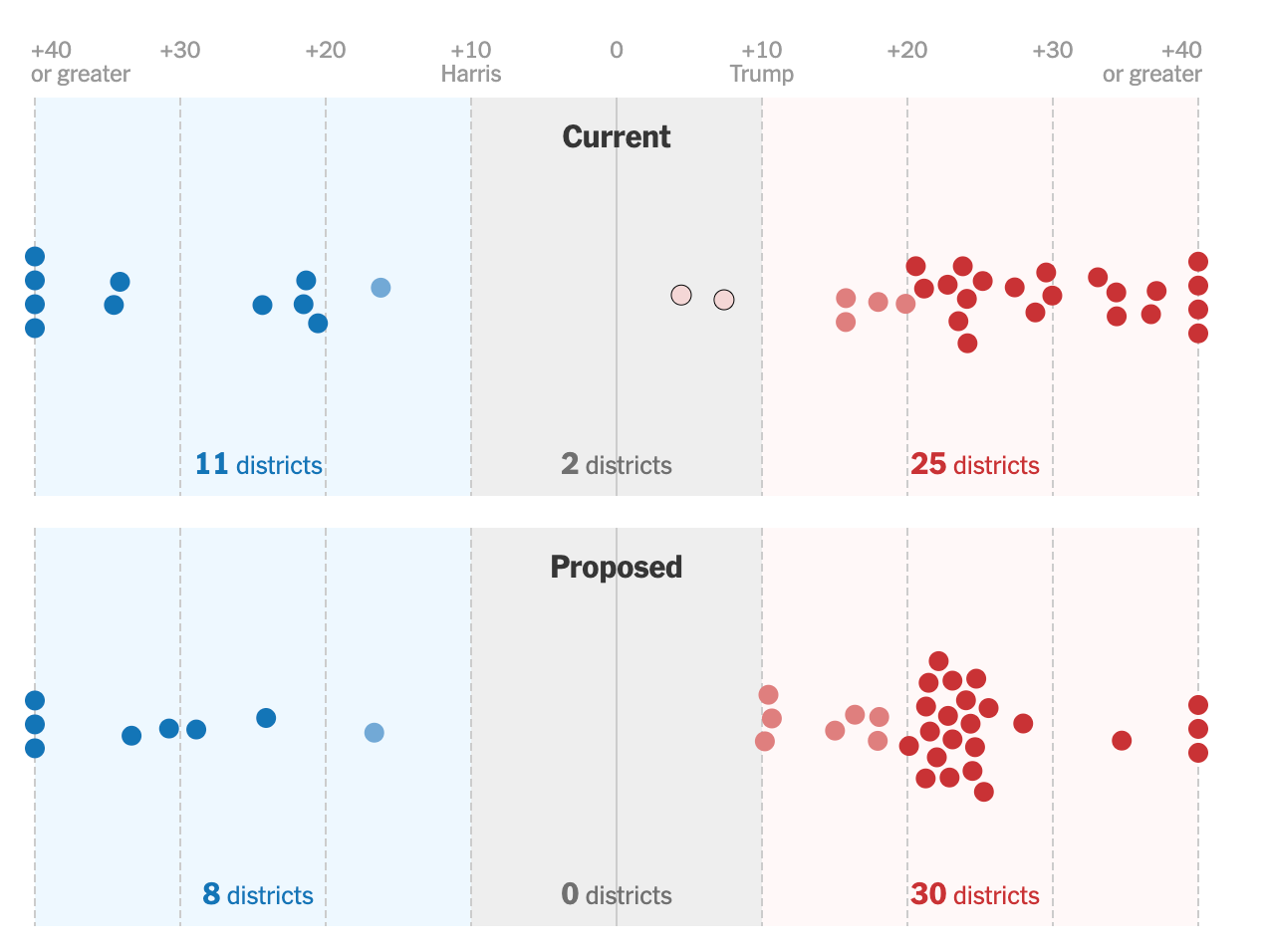 Texas’ new map poised to set off a nationwide flurry of mid-decade redistricting. Next up: California, where the state legislature cannot singlehandedly redraw district lines — that power rests with an independent redistricting commission — but plans to call a statewide referendum for voters to override the commission and approve a new map that would net Democrats up to five seats.