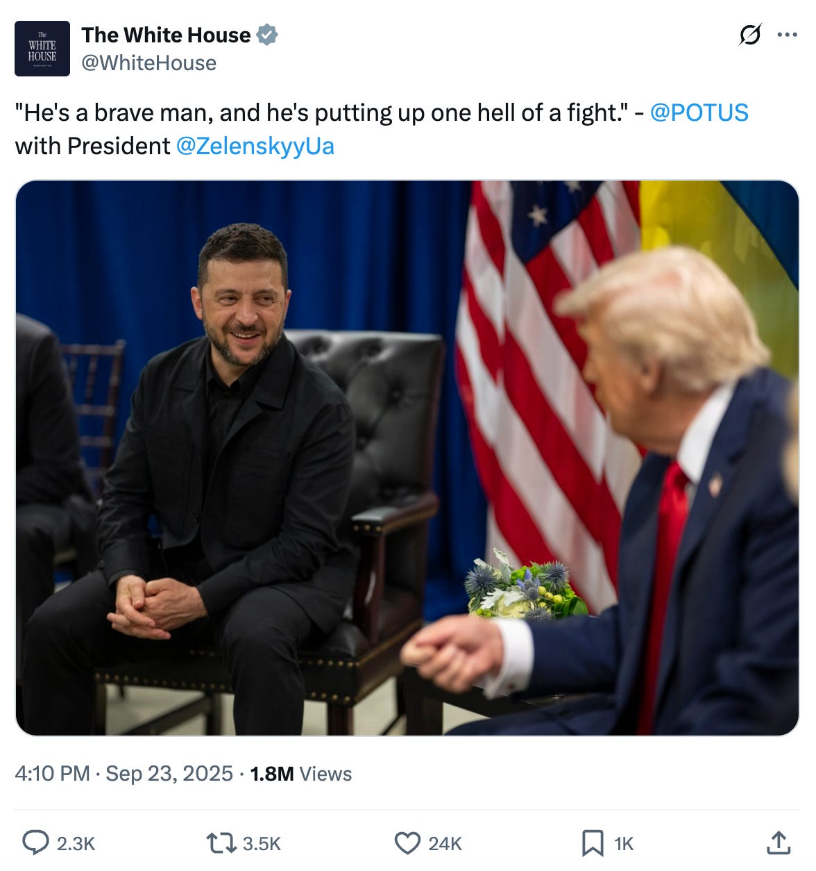 Then I started checking in on the day’s news, and realized the change was much more explicable than it had seemed. Unbeknownst to me, while in New York, Trump had spent the morning meeting with Zelensky.
