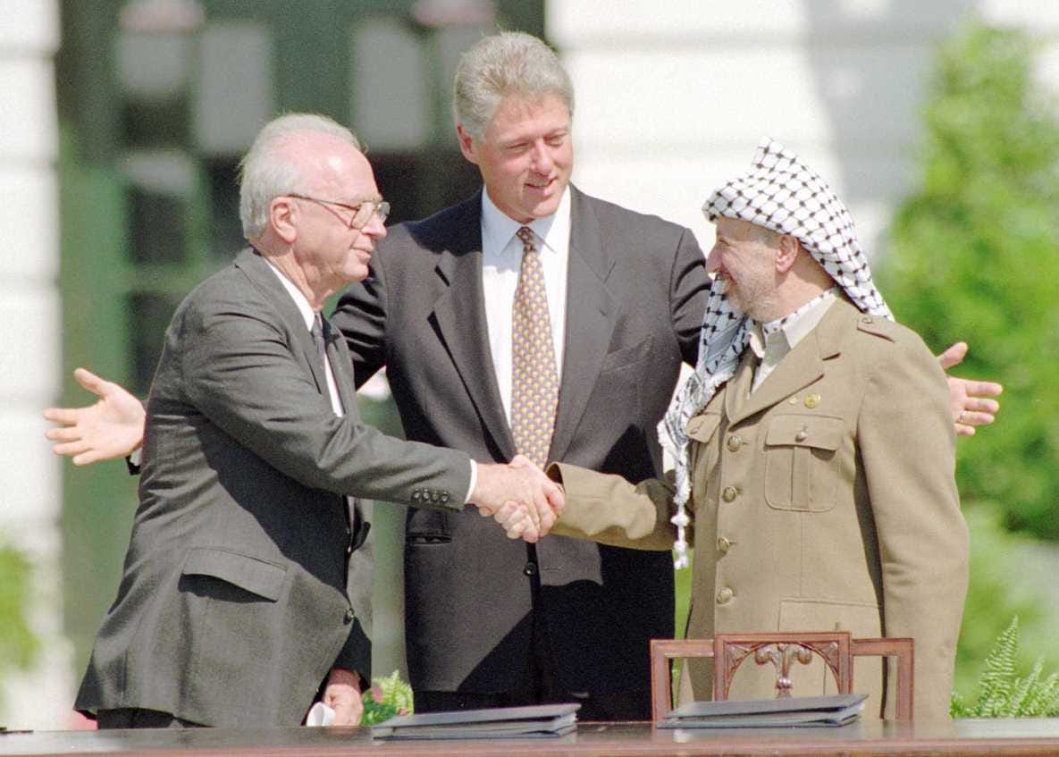 Trump is a master of optics, and he clearly organized the photo to look like other presidential three-way handshakes throughout history, including these iconic shots of Jimmy Carter and Bill Clinton: