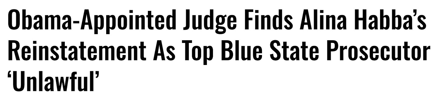 The second headline is from just last week, when Matthew Brann — a federal district judge in Pennsylvania — ruled that Trump ally Alina Habba had been “unlawfully” appointed as the acting U.S. attorney in New Jersey.